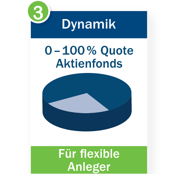 Das Depot Dynamik wird unter einem unternehmerischen Ansatz geführt. Den höheren Ertragschancen stehen entsprechend höhere unternehmerische Risiken und eine stärker ausgeprägte Wertschwankung gegenüber.