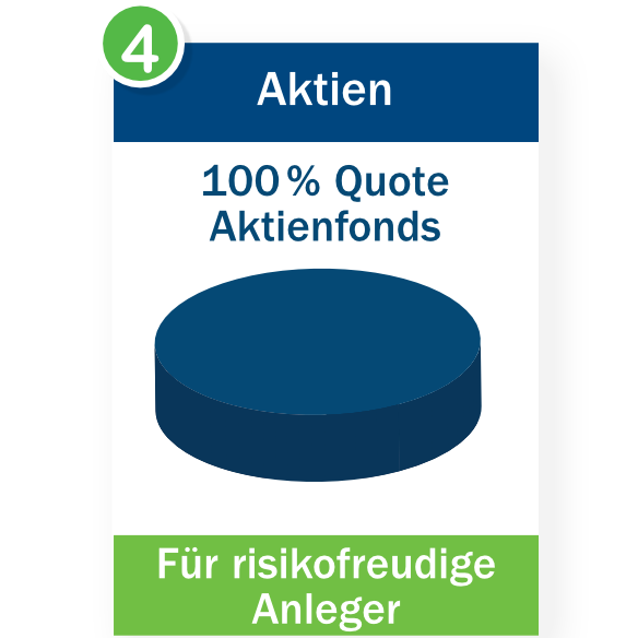 Ziel ist es, langfristig ausgeprägte Wertsteigerungen zu erzielen. Bis zu 100% der Vermögenswerte werden in Aktienfonds aus dem In- oder Ausland investiert.