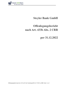 Offenlegungsbericht 2022Steyler Bank GmbH Offenlegungsbericht nach Art. 433b Abs. 2 CRR per 31.12.2022 Offenlegungsbericht nach Art. 435 bis 455 der Verordnung (EU) Nr. 575/2013 („CRR“) Seite 1 von…