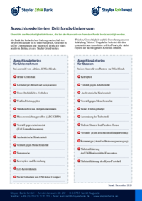 Ausschlusskriterien Drittfonds-Universum Übersicht der Nachhaltigkeitskriterien, die bei der Auswahl von fremden Fonds berücksichtigt werden. Als Bank der katholischen Ordensgemeinschaft der Steyler…